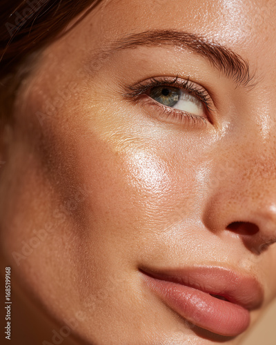 macro, freckle, beauty, woman, closeup, radiant, skincare, cosmetic, smooth skin, shine, dermatology, soft light, natural beauty, editorial, youthful, glamour, trend, aesthetic, modern, copy space, marketing, advertisement, luminescence, radiance, premium