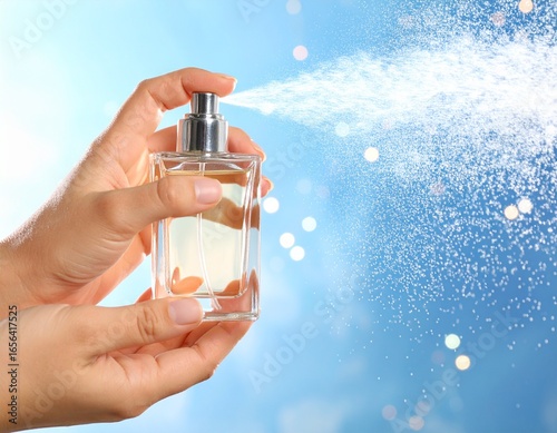 Close-Up of Hand Spraying Luxury Perfume Bottle with Fine Mist