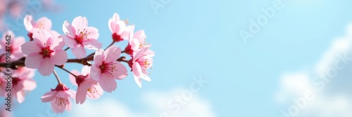 cherry, blossom, pink, flower, hanami, blue, sky, spring, bloom, tree, tree branch, apple, floral, nature, beautiful, delicate, sakura, japan, japanese, asia, asian, seasonal, white, cloud, background, wallpaper, banner, copy space, space, frame, template, card, design, garden, blooming