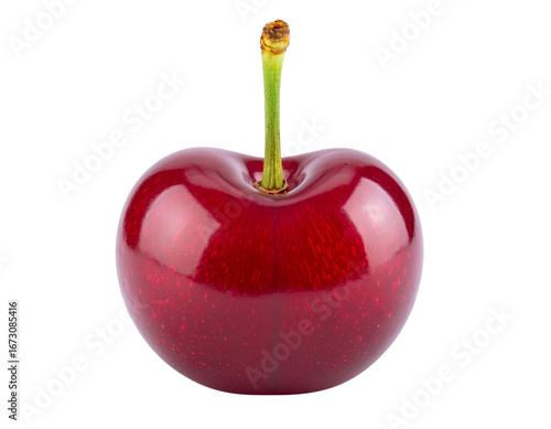 Close-Up of Red Cherry with Gold Accents and Subtle Shadow, Isolated PNG