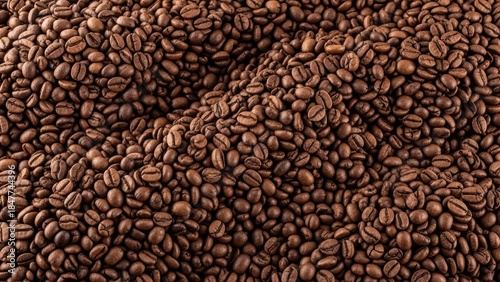 Close-up of roasted brown coffee beans with rich texture and aroma
