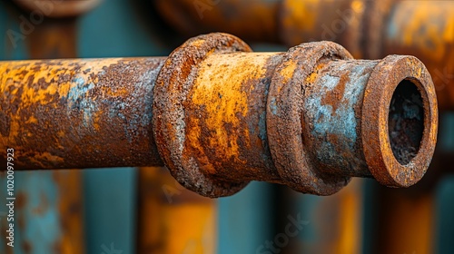 metal, pipe, rust-eaten, rusted, corrosion, orange, yellow, brown, blue, green, old, weathered, worn, industrial, construction, texture, surface, macro, detail, abstract, background, photo, image, pattern, rough, grunge, vintage, decay, erosion, iron, plumbing, machinery, engineering, manufacturing, structure, equipment, element, object, material, form, shape, hollow, round, circle, hole, open, edge