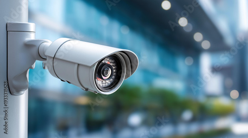 Close-up of security camera mounted wall, modern office ready used, surveillance technology, workplace monitoring equipment, with copy space