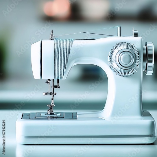Close-up of sewing machine in action, diffused light, textile detail