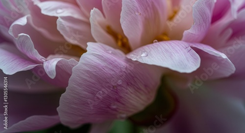 Close-up of Soft Pink Peony Bloom with Delicate Water Droplets