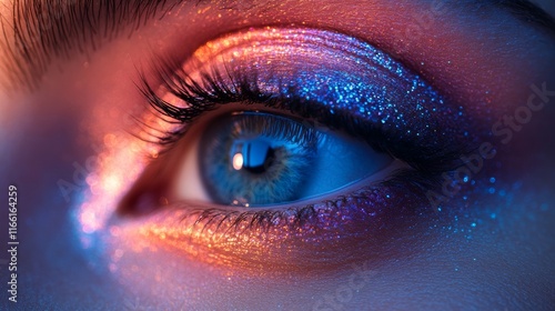 eye, make-up, sparkling, blue, purple, closeup, artistic, vibrant, bold, beauty, unique, modern, stylish, elegant, creative, bright, detail, dramatic, captivating, trendy