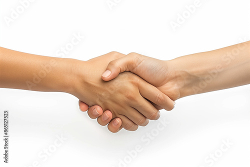 Close-up of Two Hands Shaking in a Gesture of Trust, Agreement, and Unity on a White Background