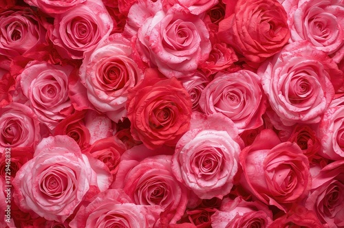 Close-up of vibrant red and pink roses as a backdrop