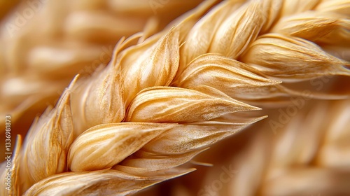 Close-up of wheat spikelet with intricate details, representing natural farming, grain cultivation, and harvest time, ideal for rustic designs, digital book illustration
