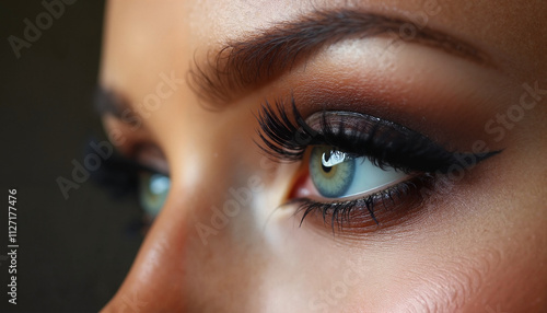 closeup, woman, eye, dramatic, eyeliner, long, lash, beauty, make-up, fashion, style, look, glance, view, vision, sight, detail, macro, cosmetic, mascara, eyeshadow, eyebrow, skin, texture, iris, pupil, light, shadow, dark, intense, seductive, mysterious, elegant, sophisticated, attractive, female, lady, person, model, part, face