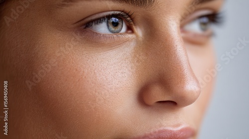 face, closeup, caucasian, female, young, skin, eye, clear, portrait, beauty, detail, complexion, nose, lip, expression, smooth, texture, natural, feature, healthy, cosmetic, skincare, serene, blue, gaze, eyelash, symmetry, soft, delicate, youthful, radiant, fresh, glow, gentle, vibrant, elegant, sharpened, aesthetic, appearance, pure, calm, flawless, minimal, refined