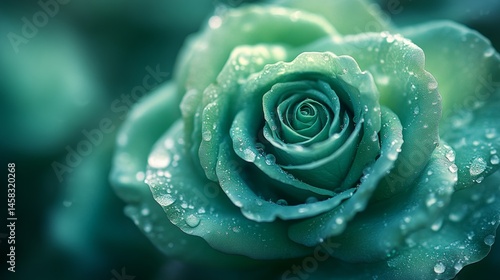 Closeup photograph of rare emerald green roses blooming in a mesmerizing spiral with glossy light reflections