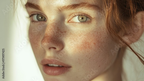 Close-up Portrait of a Freckled Woman with Green Eyes