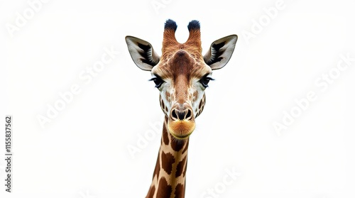 giraffe, portrait, closeup, animal, wildlife, mammal, africa, savanna, head shot, face, detailed, centered, white background, isolated, fauna, nature, wild animal, majestic, elegant, long neck, spot, fur, eye, expression, herbivore, ungulate, creature, photo
