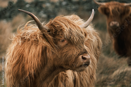 scottish, cow, ginger, red, orange, bull, horn, shaggy, hairy, coo, scotland, britain, domestic, animal, wildlife, farm animal, agriculture, farm, nature, portrait, profile, rural, landscape, field, grass, moorland, rugged, wilderness, heritage, breed, long hair, fur, fringe, iconic, traditional, countryside, pasture, meadow, rustic, environment, farming, beef, highland cow