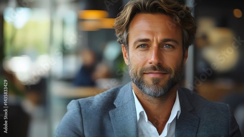 man, portrait, photogenic, adult, business, confident, face, professional, suit, businessman, male, serious, executive, attractive, success, stylish, well-dressed, formal, closeup, businessman, office, smart, gentleman, leadership, career, modern, elegant, fashion, style, contemporary, studio, indoor, caucasian, mature, grooming, beard, hair, eye, looking, positive, white shirt, grey, blazer, good-looking, smiling