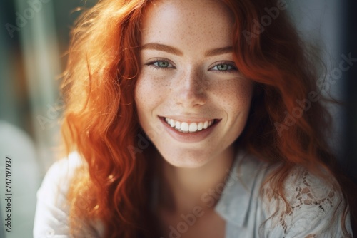 Close-up portrait of a woman with red hair. Suitable for beauty and fashion concepts