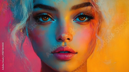 woman, face, portrait, girl, female, beauty, young, model, fashion, make-up, hair, eye, skin, colours, colourful, vibrant, art, digital, illustration, graphic, design, style, pretty, attractive, glamour, elegant, aesthetic, expression, look, gaze, closeup, head, shoulder, blond, light, shadow, texture, mood, feeling, emotion