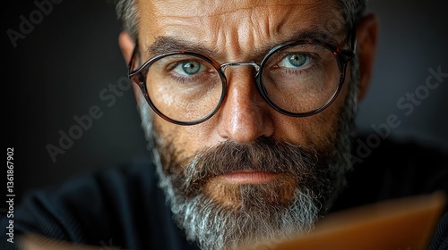 man, portrait, closeup, face, beard, goggles, eye, serious, thoughtful, seriousness, expression, sharpened, stylish, style, male, adult, mature, human, detail, expressionless, intense, looking, attention, dignified, concentrated, determined, intellectual, confident, dignity, vision, visionary, spectacle, frame, eyeglass, pensive, intelligent, powerful, authority, respectful, modern, vintage, retro, depth, sharp, photo, image, photo