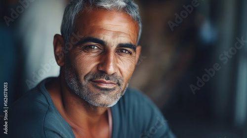 man, portrait, mature, confident, beard, grey hair, thoughtful, closeup, adult, face, serious, expression, middle east, wisdom, eye, casual attire, photogenic, male, natural light, skin, wrinkle, human, senior, lifestyle, model, charisma, real, realistic, background, calm, quiet, black