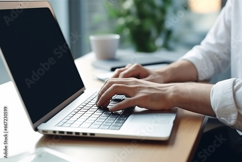 Close-up Portrait of Typing Keyboard on Laptop: Online Work and Communication