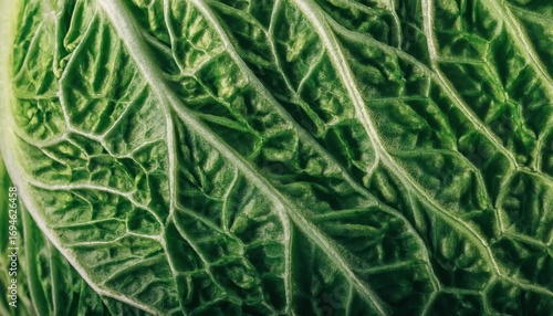 close-up texture of fresh green lettuce leaf with intricate veins and natural patterns ideal for food, health, or nature themed background
