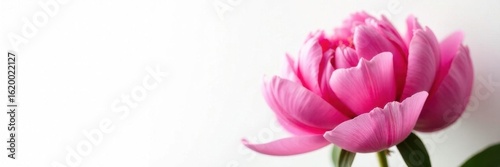 Close-up vibrant pink peony blossoms, pristine white background , romantic, image, isolated background