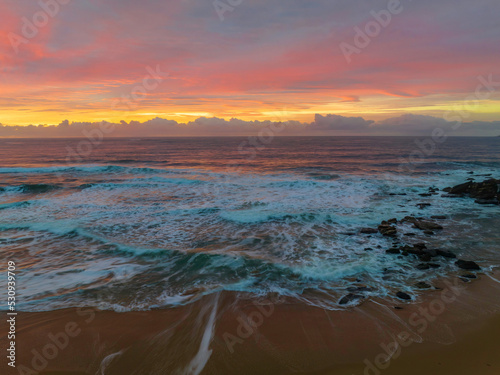 aerial, australia, blue, cloud, cloud cover, cloud, coast, coastal, colours, colourful, colours, headland, landscape, morning, nature, new south wales, nsw, ocean, outdoors, pink, scene, scenery, sea, seascape, shore, sky, sunrise, water