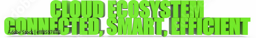 Cloud Ecosystem Connected Smart Efficient, 3d text