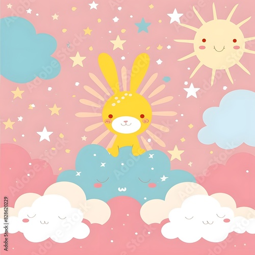 rabbit, easter, rabbit, vector, card, holiday, cartoon, illustration, animal, spring, egg, celebration, design, baby, pink, greeting, fun, happy, art, flower, cute, decoration, hare, love, nubes, children, children, angel, boy, pattern, seamless, moon, birthday, sky, christmas, gift
