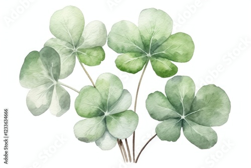 illustration, watercolor, background, creativity, watercolor, freshness, closeup, geranium, shamrock, blossom, cut-out, isolate, clover, flower, growth, herbal, nature, vignetting, green, paint, paper, plant, white, herb, leaf