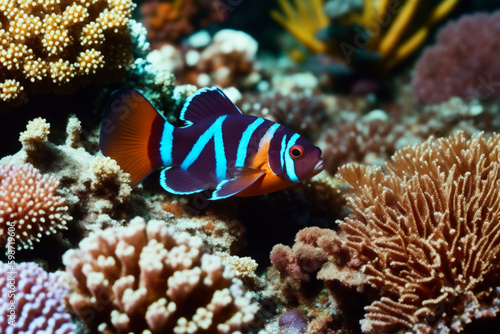 clownfish, fish, blue, tropical, aquarium, nature, sea, marin, underwater, animal, ocean, water, reef, coral, wildlife, background, life, travel, shark, wild, beautiful, aqualung, landscape, under, exotic, colours, undersea, predator, flock, salt water, ai