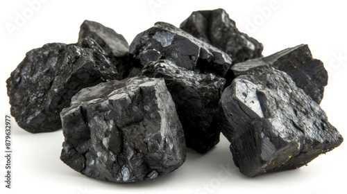 Coal pieces, isolated against a pristine white background