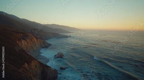 ocean, sunset, cliff, coastal, seascape, rock, wave, beach, shoreline, coast, sea, horizon, landscape, nature, view, water, sky, mountain, panorama, aerial, photo, image, pacific, california, scenic, vista, beautiful, twilight, golden hour, sand, shore