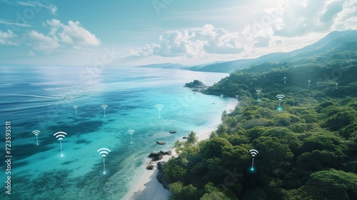 seascape, paradise, wireless, signs, network, coastal, serene, tropical, connectivity, innovation, sea, water, beach, ocean, island, landscape, sky, coast, nature, travel, summer, view, blue, vacation, rock, mediterranean, cloud, clear, greece, shore, reef, rock, bay