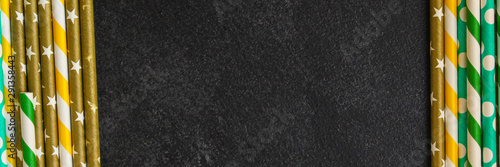 cocktail tubes paper, bright decorations (Kraft paper, eco packaging, wooden cutlery, eco-friendly product,) menu concept. food background. copy space. Top view