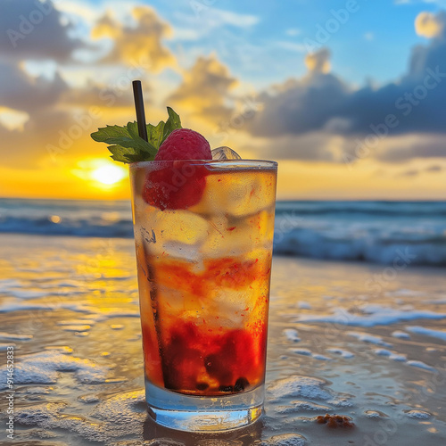 cocktail, drink, glasses, ice, cold, fruit, alcohol, juice, red, beach, summer, cool, refreshment, fresh, tropical, tea, mint, strawberry, lemon, straw, sweet, orange