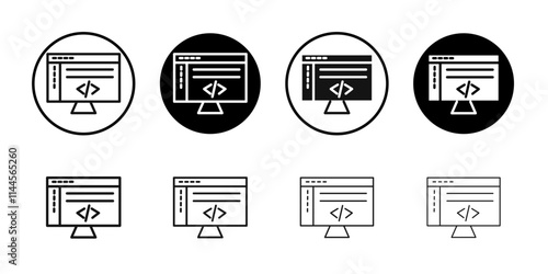 coding program icon Flat outline fill set collection
