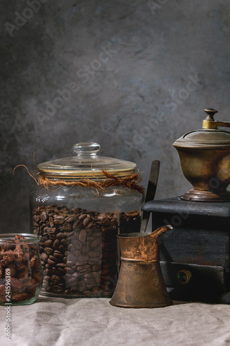 hot drink, bean, grinder, bean, background, roasted, brown, aroma, vintage, black, espresso, caffeine, dark, table, natural, mill, traditional, drink, grated, jar, arabica, kitchen, pot, turkish, morning, beverage, breakfast, food, roast, grain, handle, brewed, aromatic, concept, interior, clothes, tablecloth, sweet, almond, snack, copy, space, glasses, linen, textile