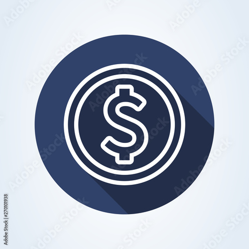 Coin dollar. Flat style. line art illustration icon isolated on white background.