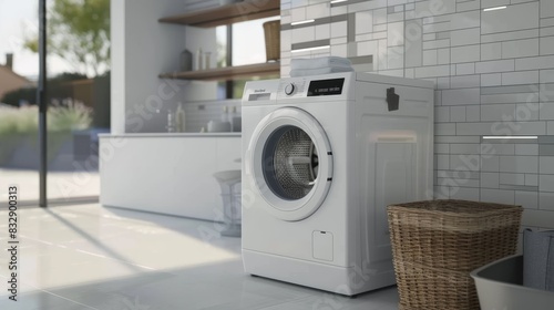 coin, operated, washing, machine, stack, laundry, basket, nearby, washer, laundered, appliance, white, clean, isolated, equipment, washing machine, dryer, clothes, household, housework, front, vector, cleaning, home, object, technology, illustration, icon, door, domestic