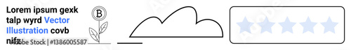 Coin with B symbol near growing plant, simple cloud outline, and five-star rating design. Ideal for sustainability, ecology, feedback, branding, certification, environment simple landing page