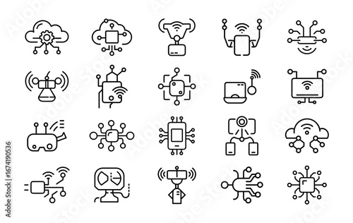 icon, technology, cloud, computing, datum, cyberspace, of, thing, artificial, intelligence, ai, machine, learning, network, connection, wireless, digital, abstract, symbol, graphic, design, concept, idea, illustration, hand-drawn, sketchy, doodle, outline, communication, server, database, software, hardware, information, analysis, processing, storage, system, automation, robot, brain, circuit, chips, smart, contraption, device, mobile