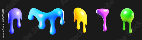 Collection of 3D vector abstract illustrations of paint flowing down, flowing abstract figures, abrasive dark drops.