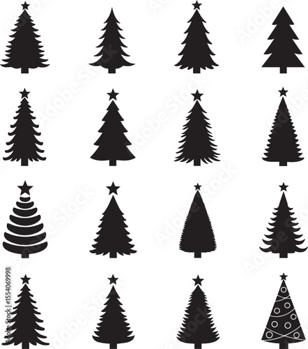 christmas tree, silhouette, black, holiday, festive, winter, celebration, decor, evergreen, pine tree, star, decoration, illustration, graphic, vector, simple, minimalist, icon, design, seasonal, traditional, variety, collection, ornament, holiday season, winter holiday, outline, stylised, pine, conifer