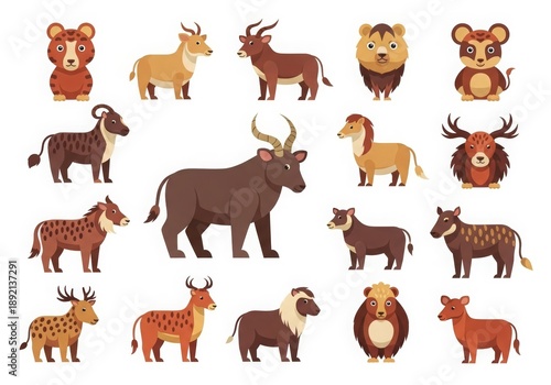 Collection of Chinese zodiac animals in flat illustration style, isolated on a white background. Modern and minimal vector design suitable for Lunar New Year, education, graphic design, and festive co