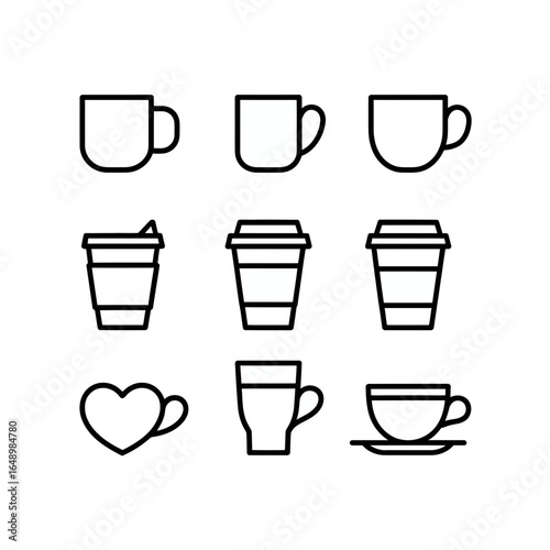 coffee cup, mug, cup, drink, beverage, hot drink, tea, hot drink, cappuccino, latte, espresso, lid, nubes, love, icon, symbol, graphic, design, illustration, vector, outline, line art, minimalist, simple, clean, modern, silhouette, isolated, white background, background, collection, set, group, variety, different, type, cafes, cafes, eatery, breakfast, morning, refreshment, container, handle, saucer