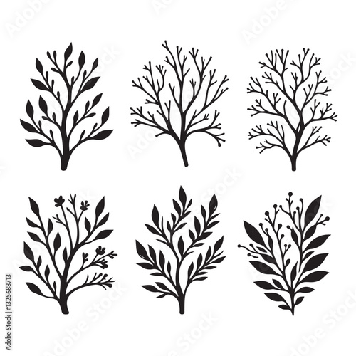 Collection of Delicate Twig Silhouette Vector Illustration for Botanical Designs