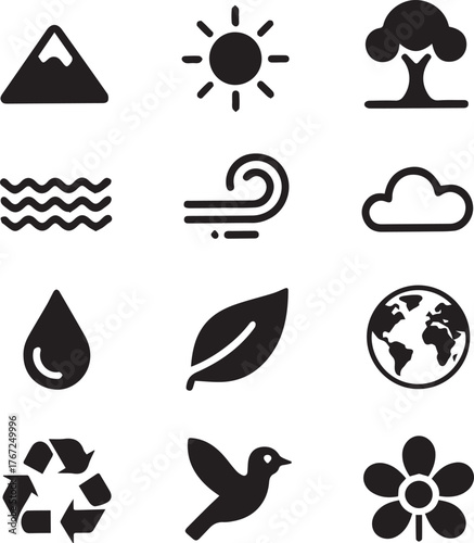 Collection of environmental and nature themed icons for design projects