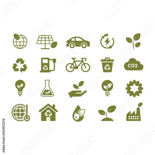 eco, environment, sustainable, sustainability, nature, green, energy, ecology, conservation, pollution, earth, globe, solar panel, car, electric, renewable, plant, recycling, reusing, fuel, bicycle, trash, carbon dioxide, light bulb, leaf, beaker, hand, gear, house, water, factory, climate change, vector, icon, symbol, set, icon, tree, signs, design, illustration, sun, home, bio